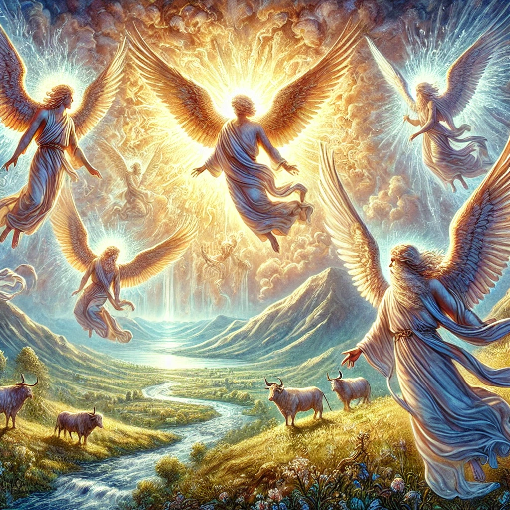 Winged Beings – Seraphim and Cherubim are described with multiple wings (Isaiah 6:2, Revelation 4:8).